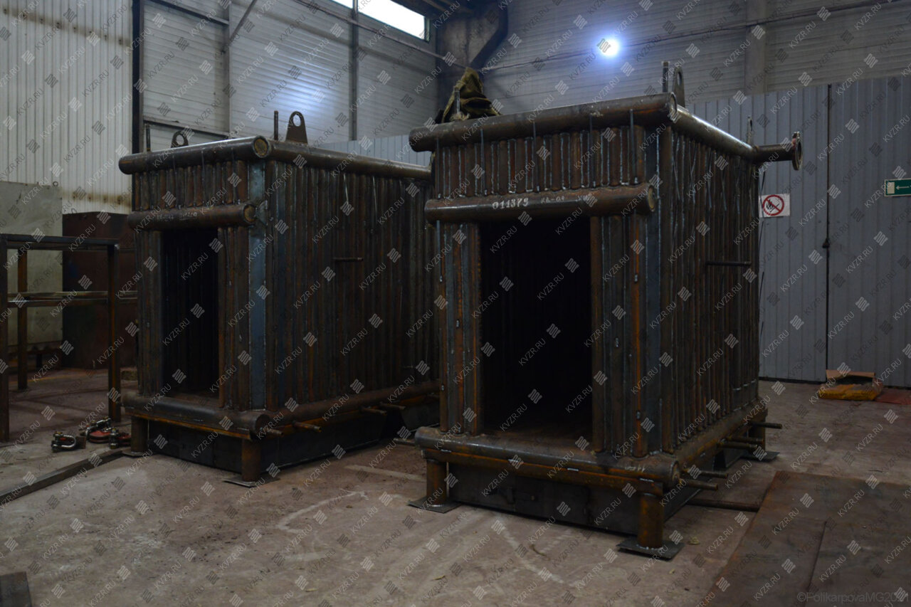 Все водогрейные котлы 0 93 МВт нашего производства - стальные, горизонтальные, водотрубные, прямоточные и компактные. Трубная часть котельного блока выполняется из труб различных диаметров, материал труб сталь 10 и 20. Блок снаружи обваривается стальной охлаждаемой полосой, поэтому в наших котлах исключена возможность задымления котельного зала. Снаружи на каркас из профильной трубы и швеллера крепится утеплитель и декоративная обшивка из полимерного листа. В обшивке предусмотрены лючки для очистки поверхностей нагрева.