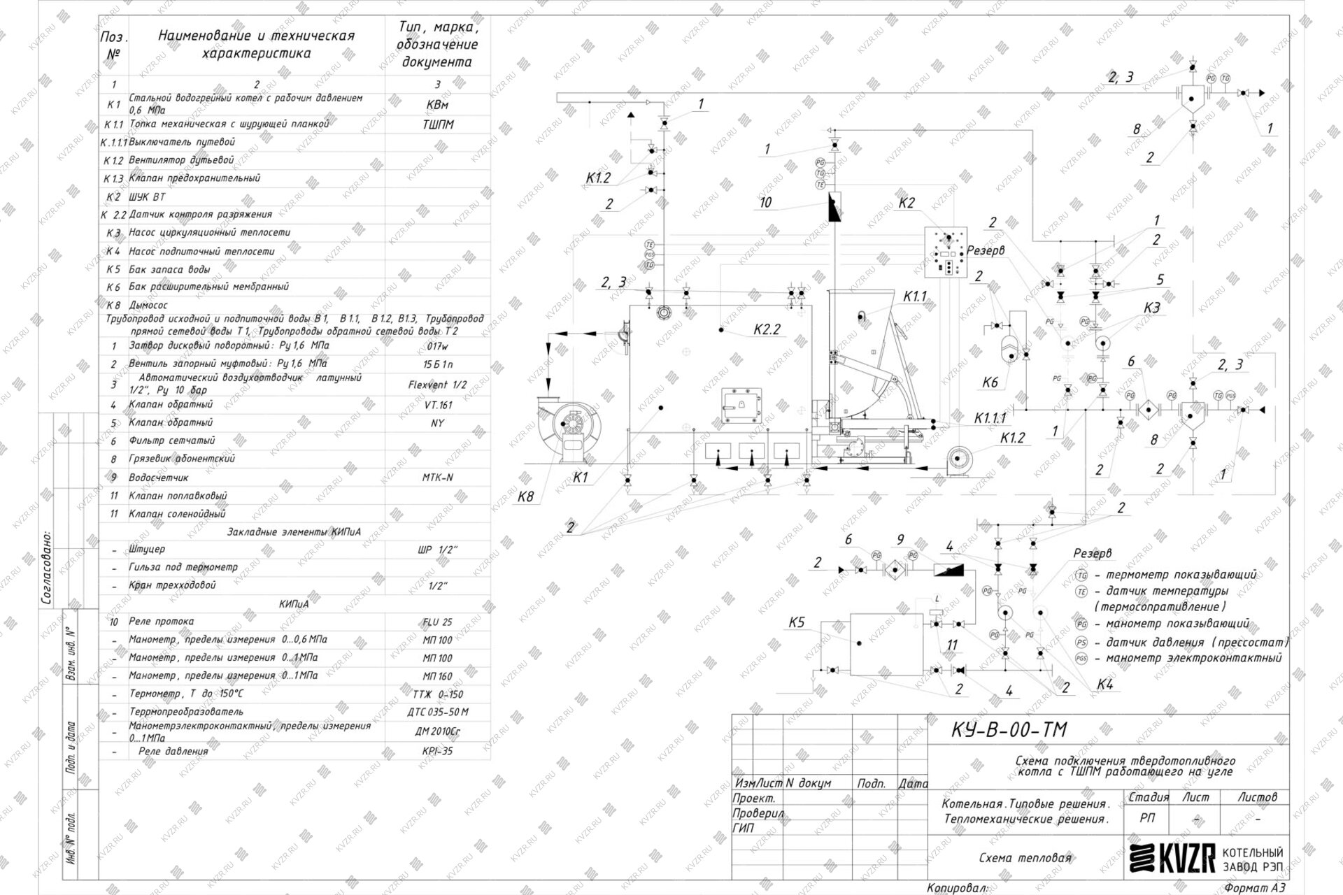 Для эффективной и надежной работы котла КВм-1.0 с ТШПМ в вашей котельной вам потребуется дополнительное оборудование - автоматика ЩУК, дымосос, насос сетевой и подпиточный, золоуловитель (по желанию), транспортеры, газоходы и переходники для газового тракта, дымовая труба. Мы предлагаем рассмотреть типовые варианты комплектации.