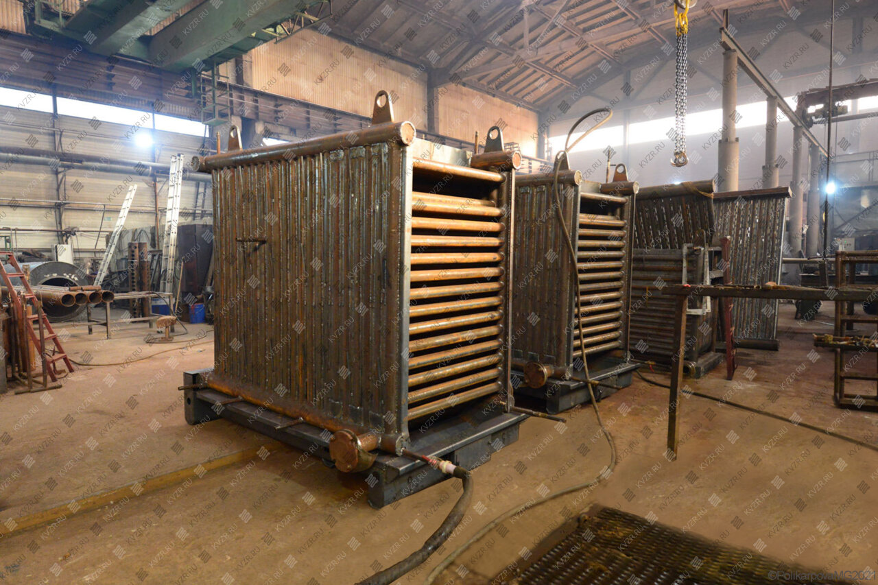 Все водогрейные котлы 1160 кВт нашего производства - стальные, горизонтальные, водотрубные, прямоточные и компактные. Трубная часть котельного блока выполняется из труб различных диаметров, материал труб сталь 10 и 20. Блок снаружи обваривается стальной охлаждаемой полосой, поэтому в наших котлах исключена возможность задымления котельного зала. Снаружи на каркас из профильной трубы и швеллера крепится утеплитель и декоративная обшивка из полимерного листа. В обшивке предусмотрены лючки для очистки поверхностей нагрева.
