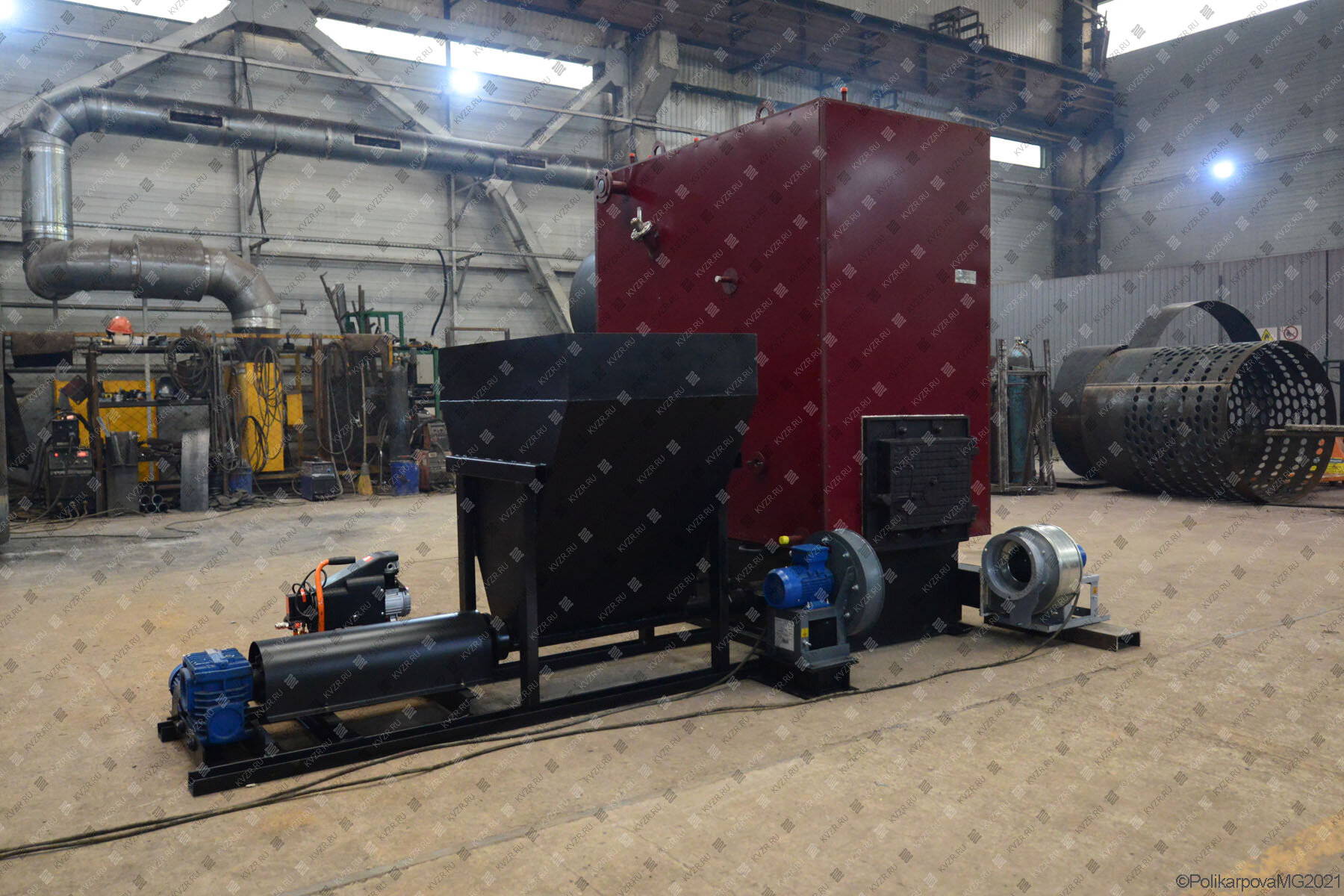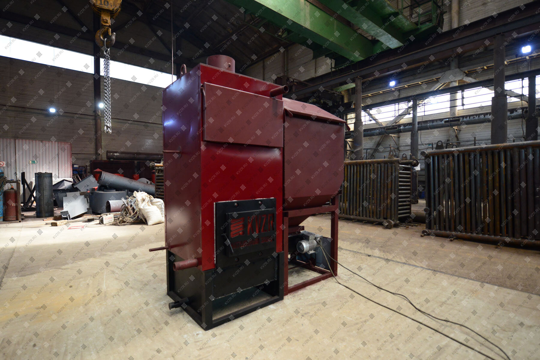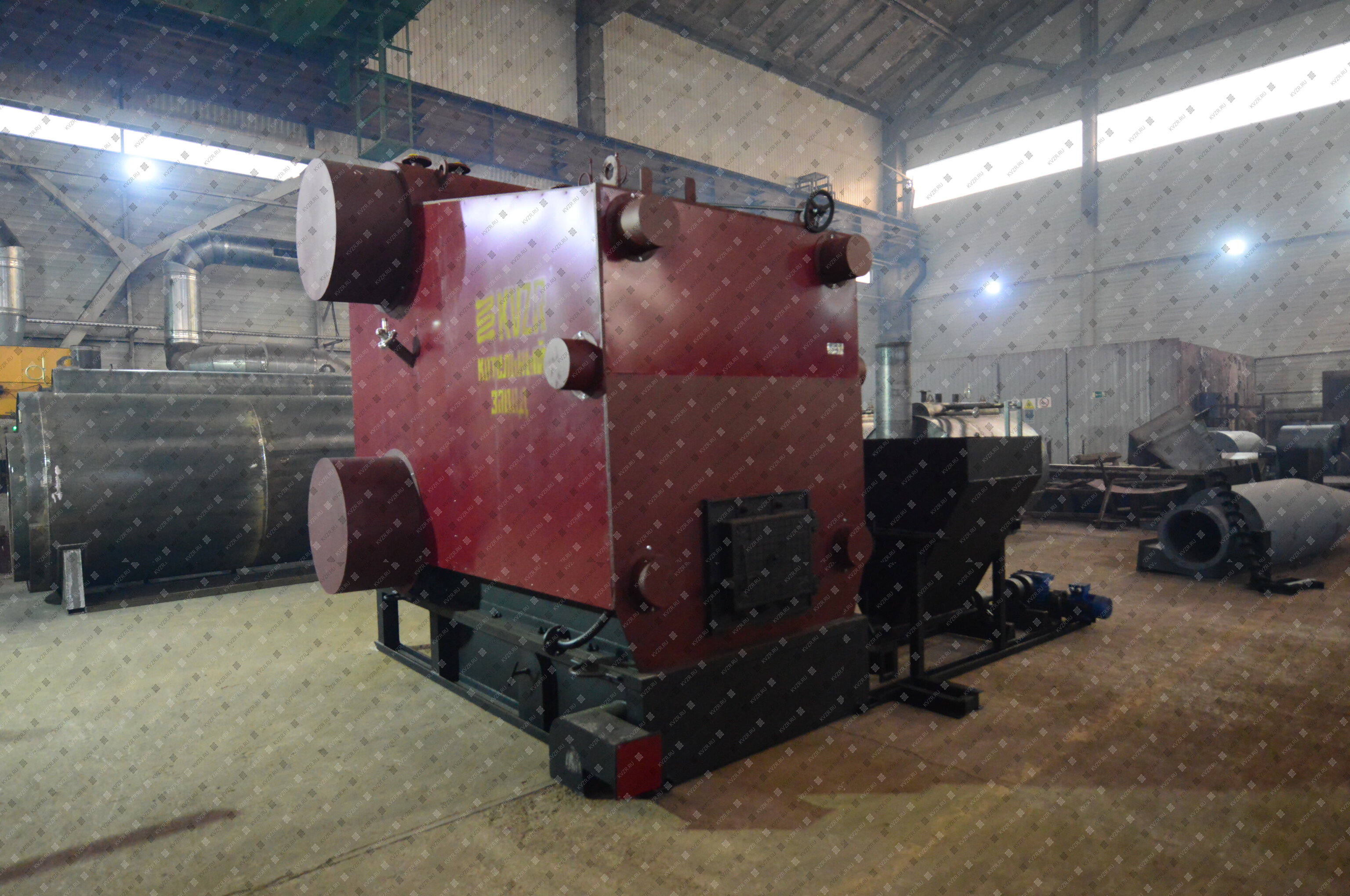 Котельный завод изготавливает водогрейные промышленные котлы на древесных отходах, отапливаемая площадь от 2000 м². Температура воды 95 - 115 градусов.