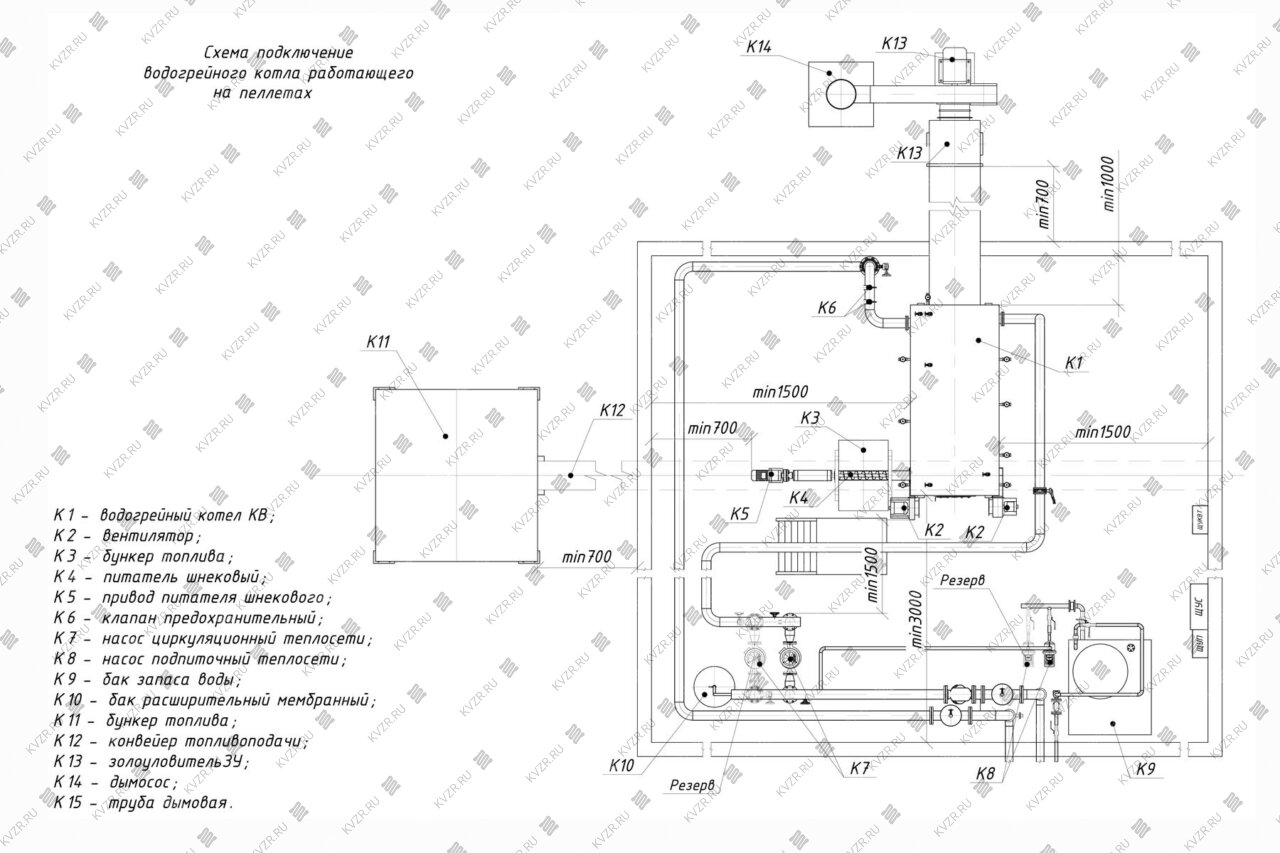 Размеры котельной так же зависят от способа наполнения оперативного бункера. При использовании транспортера или шнека размеры котельной меньше чем при заезде в нее спецтехники для выгрузки топлива. Возможно расположение оперативного бункера в отдельном помещении для того чтобы уменьшить размеры основной котельной.
