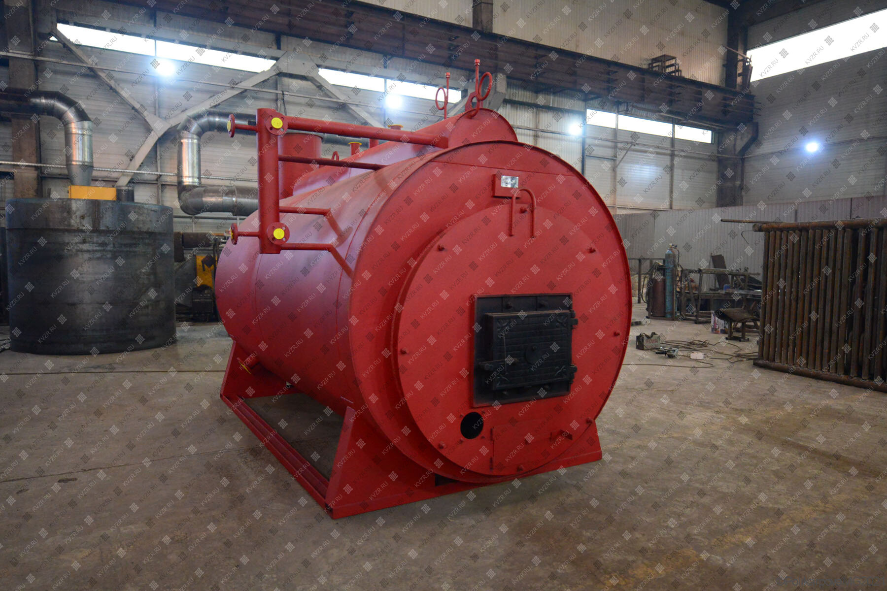 Горизонтальный паровой котел жаротрубный производительностью 300-1600 кг пара в час представляет собой стальной цилиндрический агрегат с колосниковой слоевой топкой и автоматикой.