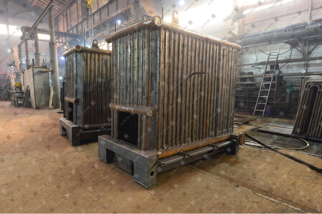 Промышленный водогрейный котел выполнен в горизонтальной компоновке, блочно-транспортабельный и состоит из двух блоков: горизонтально-топочного и вертикального конвективного. Конвективный блок состоит из конвективного пакета. Конвективный пакет набирается из U-образных пакетов. Трубы расположены в шахматном порядке. Конвективные трубы привариваются к вертикальным стоякам. Конвективная поверхность нагрева состоит из пакетов, которые при ремонте легко демонтируются даже в ограниченном пространстве (при ширине проходов между котлоагрегатами в один метр). В нижней части конвективных пакетов находится зольный бункер с лазом для очистки от зольных отложений и осмотра труб конвективного пучка.